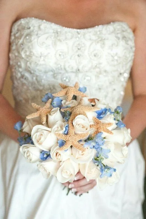 Astuce audacieuse : intégrer discrètement un coquillage ou une perle dans le bouquet.