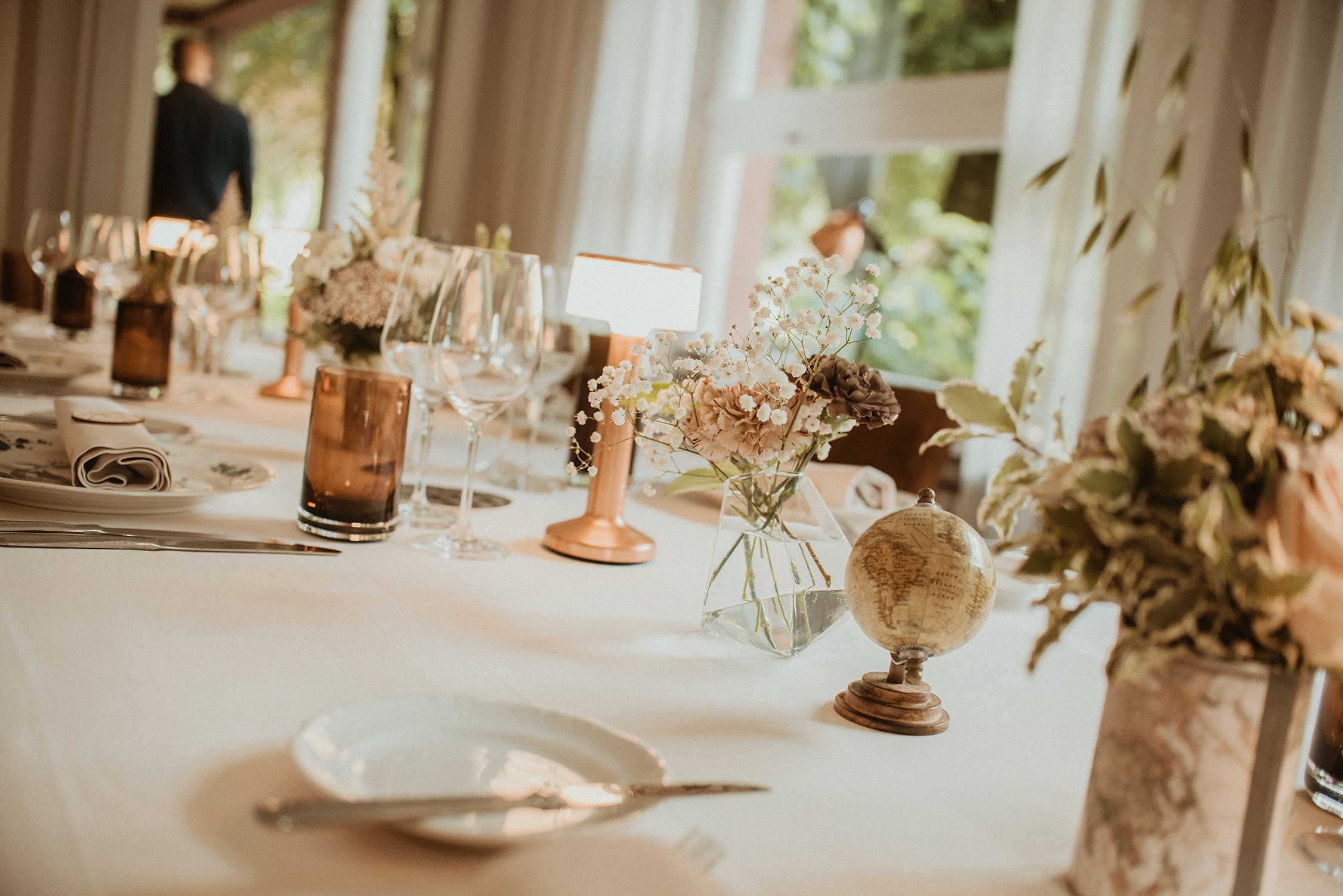 Le tout crée une ambiance romantique et lumineuse, parfaite pour un déjeuner de mariage.