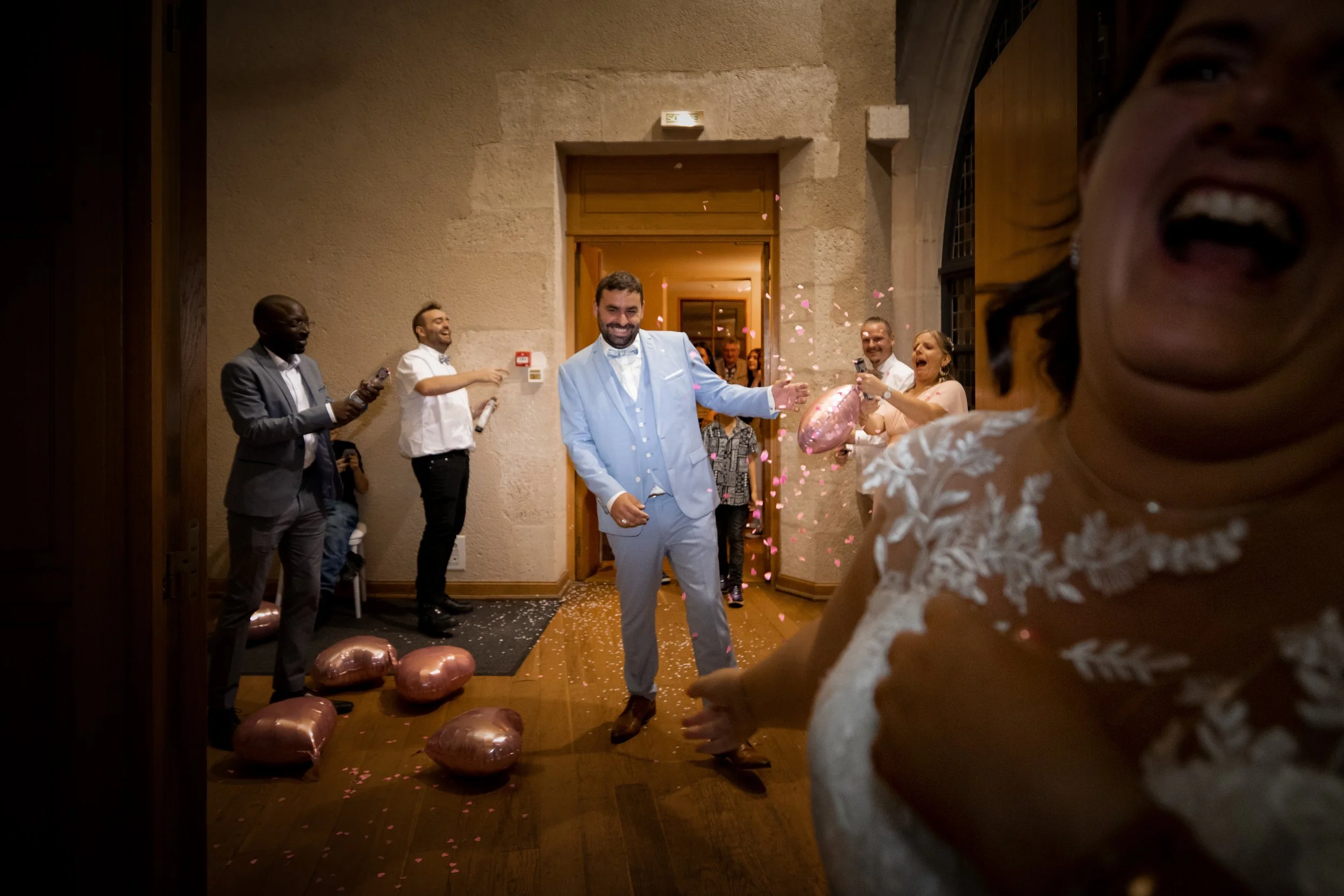 On passe d’un dîner posé à une soirée où plus personne ne calcule rien. Les invités dansent, les mariés profitent, et les émotions sont brutes.